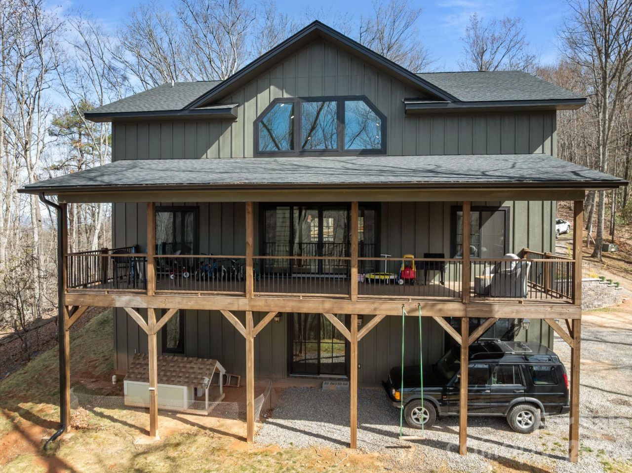 Tucked away at the end of a long winding private drive, this mountain retreat offers the rare combination of modern construction, expansive acreage, and peaceful seclusion on approximately 20 acres in Candler. Surrounded by natural beauty and elevated views, 215 Ridgeway Road is designed for those seeking privacy, space, and connection to the outdoors.The home welcomes you with a striking exterior, covered entry, and generous outdoor living spaces that immediately invite you to slow down and take in the mountain setting. Expansive covered decks create an ideal place for morning coffee, evening gatherings, or simply enjoying the quiet surroundings and seasonal views.Inside, the open-concept main living area is filled with natural light and features soaring ceilings, oversized windows, and large sliding doors that seamlessly connect indoor and outdoor living. The spacious kitchen is the centerpiece of the home, complete with a large island, abundant cabinetry, and an easy flow into the living and dining spaces?ideal for entertaining or everyday comfort.The dramatic great room offers impressive volume and warmth, with tall ceilings and oversized glass framing the surrounding landscape. Large windows throughout the home bring in light while emphasizing the peaceful wooded setting.The unfinished basement provides significant opportunity for expansion, storage, workshop space, recreation, or future customization to fit your needs. Whether envisioning additional living quarters, hobby space, or guest accommodations, the lower level adds valuable flexibility.With acreage that offers room to explore, garden, create trails, or simply enjoy privacy, this property presents a unique mountain lifestyle opportunity just a short drive to local conveniences, dining, and access to Asheville.