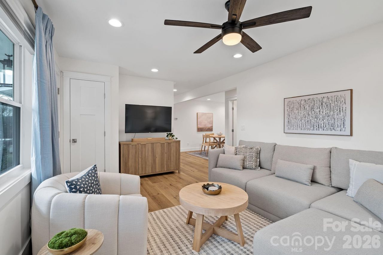 Completely renovated with a focus on quality and design, this one-level Asheville home offers the look and feel of brand-new construction. Every detail has been carefully updated, with curated finishes and fixtures that create a cohesive and elevated feel throughout.Natural light fills the interior, highlighting wide-plank flooring and a clean, modern aesthetic. The kitchen and dining area are seamlessly connected, forming a functional and inviting space for everyday living and gathering. The kitchen has been beautifully reimagined with stylish cabinetry, quality countertops, stainless steel appliances, and a distinctive backsplash that adds both texture and visual interest.The living room is set just off the main living areas, offering a comfortable and versatile space to relax while maintaining a natural sense of separation.The primary suite is spacious and refined, featuring a walk-in closet and a well-appointed bath with dual vanities, a walk-in shower, and a more elevated, luxurious feel. Two additional bedrooms provide flexibility for guests, a home office, or additional living needs, all complemented by a fully updated secondary bath.Outdoor spaces are equally inviting, with a covered front porch and a patio with pergola that creates an ideal setting for relaxing or entertaining. The yard offers a great balance of usability and charm.Conveniently located in Asheville with easy access to shopping, dining, and everyday essentials, this home presents a turnkey opportunity with a polished, modern feel throughout.